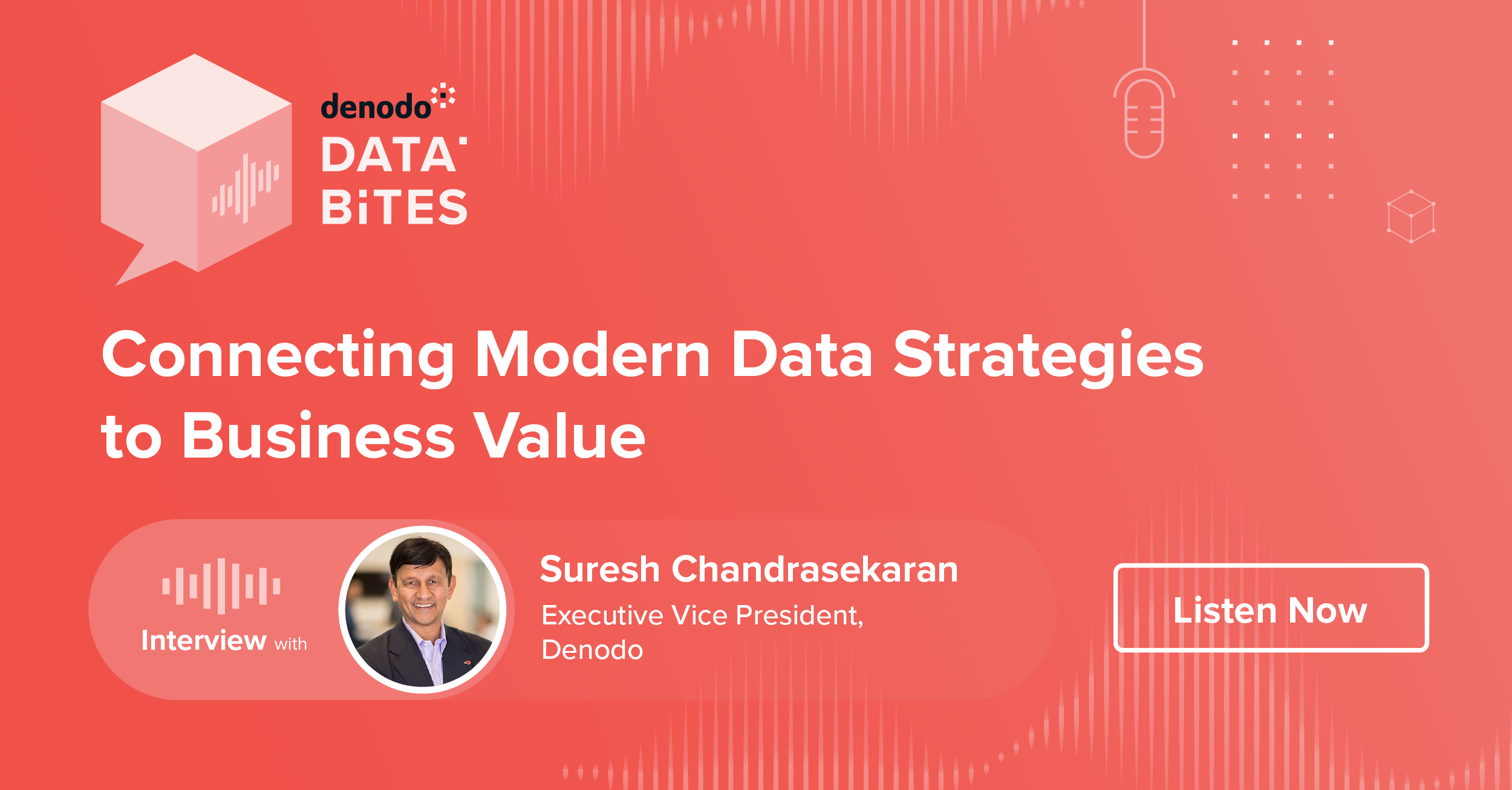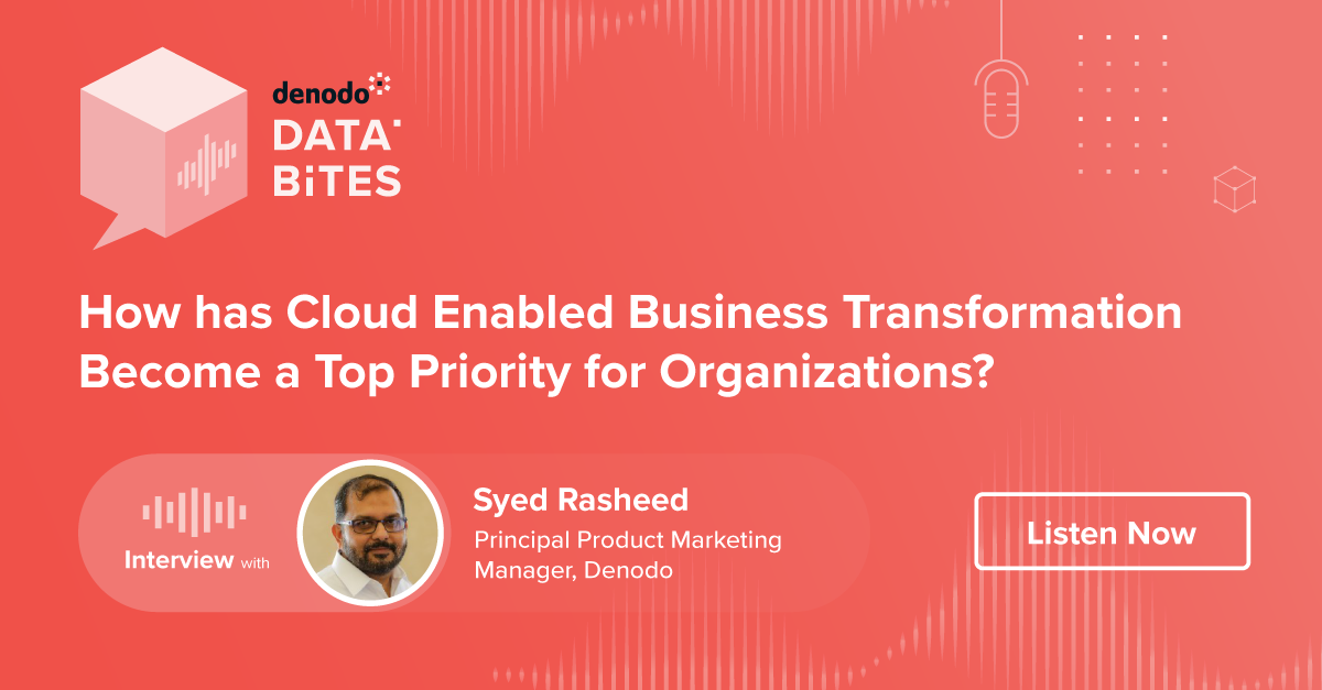 Welcome to the very first episode of Denodo Data Bites, where Ravi Shankar, SVP & CMO at Denodo, explains how Data Virtualization and Cloud Migration work together to drive organizational value.