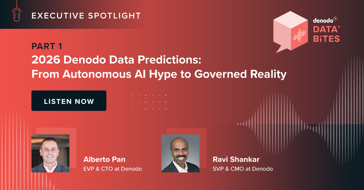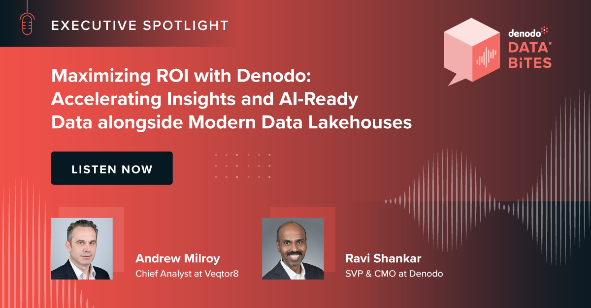 In this Executive Spotlight episode, Denodo's SVP & CMO Ravi Shankar is joined by Andrew Milroy, Chief Analyst at Veqtor8, to explore how combining Denodo with modern data lakehouses delivers a 345% ROI - uniting performance, governance, and AI readiness to drive faster, smarter, and more cost-efficient data ecosystems.