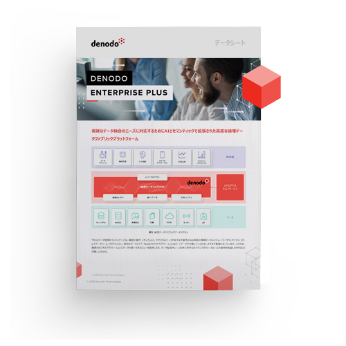 Denodo Enterprise Plusは、論理データファブリックのビジョンの実現を可能にする唯一のプラットフォームです。Denodo Enterprise Plusには、地理的に分散した複数の異種システムにわたり、各利用者に最適な形式で、管理されたデータのビジネスアプリケーションへの配信を高速化するさまざまな機能が組み込まれています。